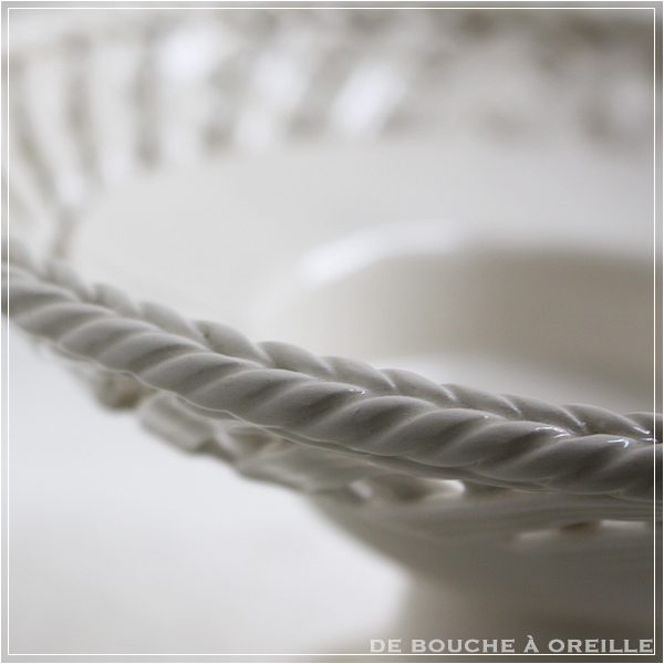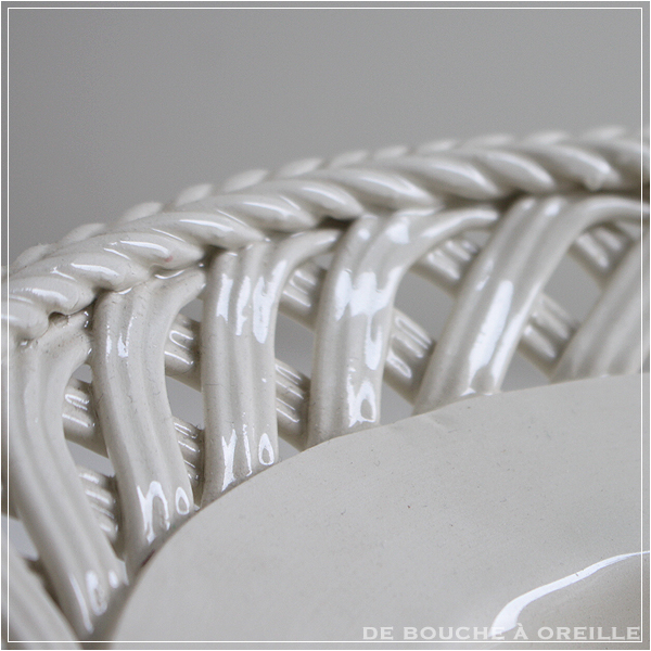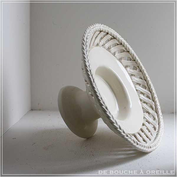 compotier / coupe sur pied / corbeille / 編み込み細工が美しい象牙色のコンポティエ フランスアンティーク