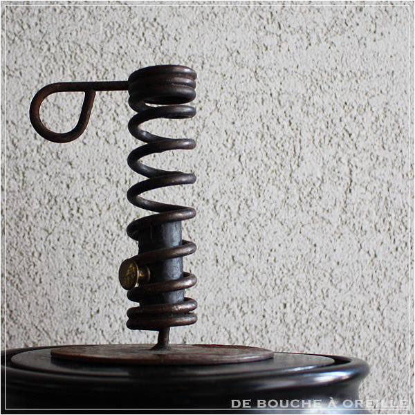 真鍮の把手を螺旋に沿ってクルクルと回転させることにより