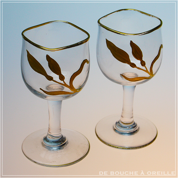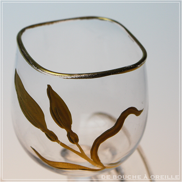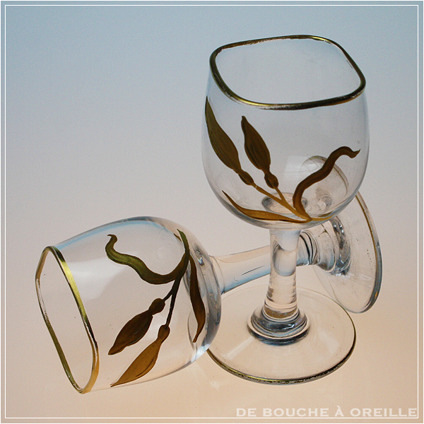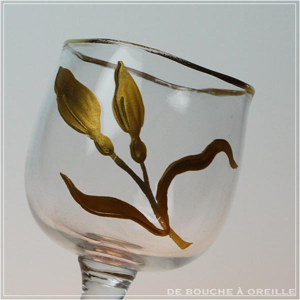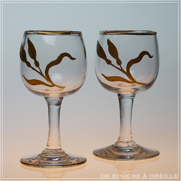verre a liqueur décor émaillé doré